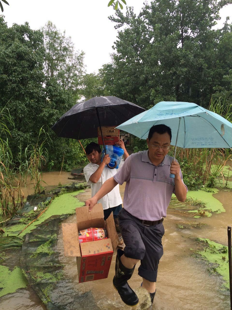 扶貧小組 冒著傾盆大雨,趟著及膝深的洪水, 走進(jìn)受困村民家中,走上搶險(xiǎn)一線的圩壩 ,為村民及日夜奮戰(zhàn)在一線的干部群眾送上 方便面、面包、礦泉水等慰問品, 并叮囑巡圩的村民在做好防風(fēng)抗?jié)彻ぷ鞯耐瑫r(shí),也要確保自身的安全。 市二院全體干部職工已做好應(yīng)急支援準(zhǔn)備,我們將與周崗村“攜手同心,共渡難關(guān)”。